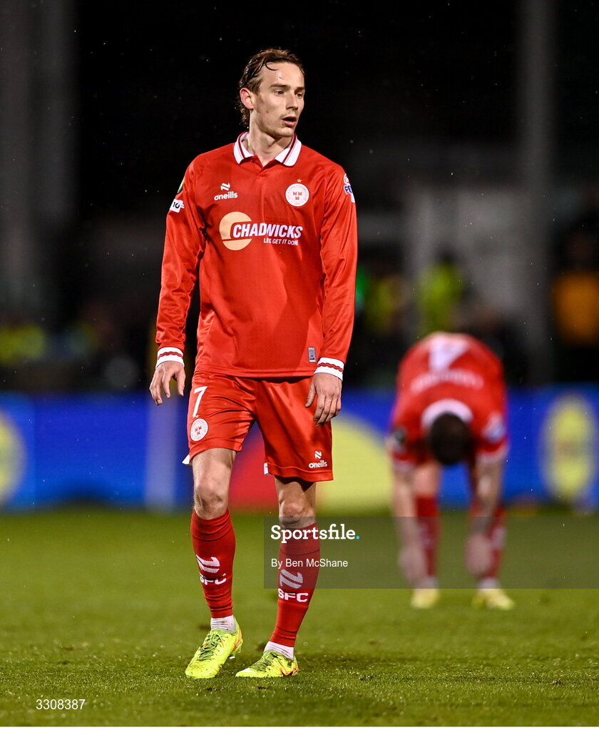 11 December 2025; Harry Wood of Shelbourne during the UEFA Conference League 2025/26 league phase match between Shelbourne and Crystal Palace at Tallaght Stadium in Dublin. Photo by Ben McShane/Sportsfile