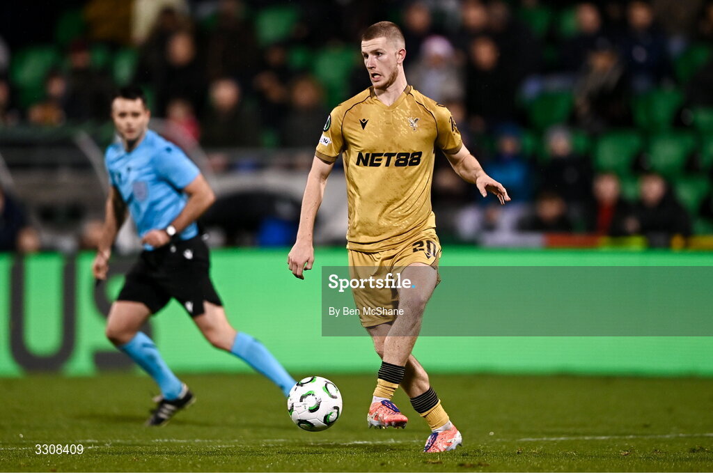 11 December 2025; Adam Wharton of Crystal Palace during the UEFA Conference League 2025/26 league phase match between Shelbourne and Crystal Palace at Tallaght Stadium in Dublin. Photo by Ben McShane/Sportsfile