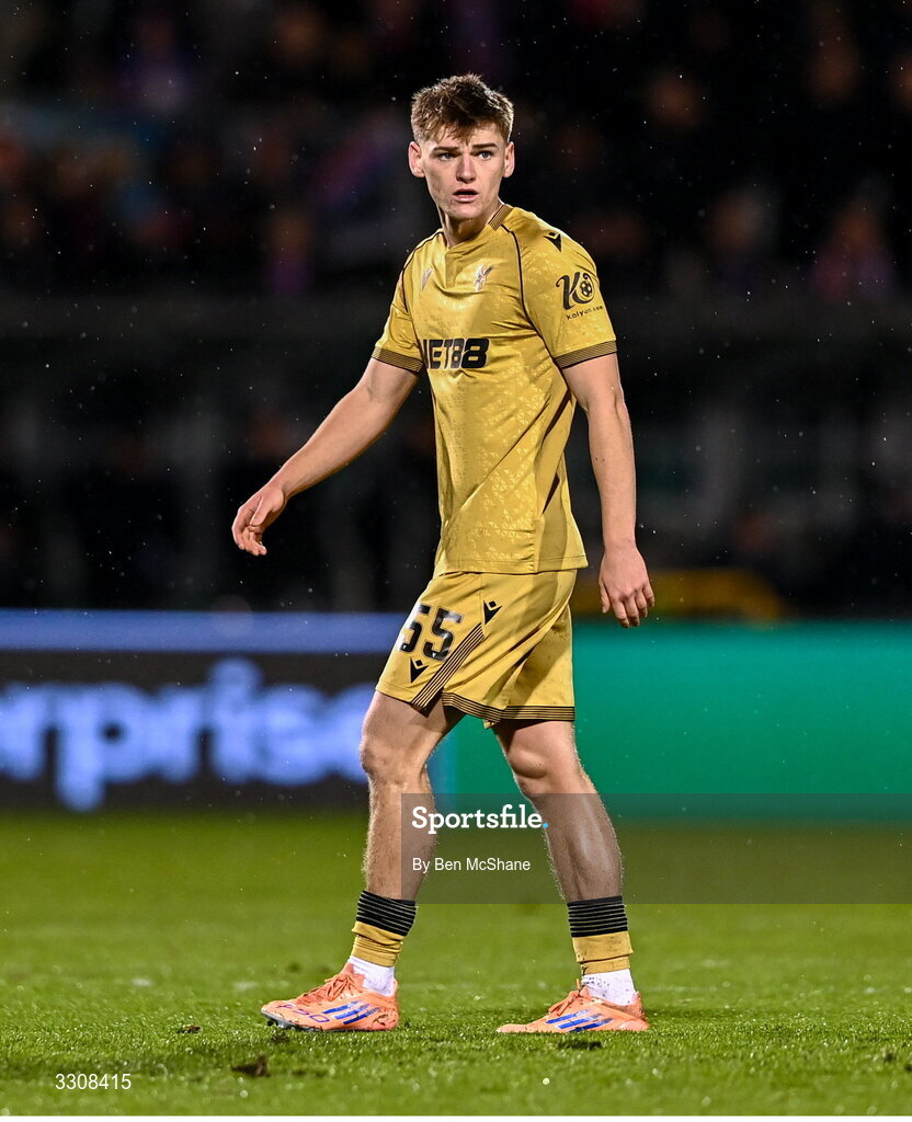 11 December 2025; Justin Devenny of Crystal Palace during the UEFA Conference League 2025/26 league phase match between Shelbourne and Crystal Palace at Tallaght Stadium in Dublin. Photo by Ben McShane/Sportsfile