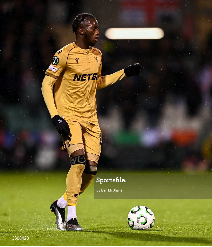 11 December 2025; Romain Esse of Crystal Palace during the UEFA Conference League 2025/26 league phase match between Shelbourne and Crystal Palace at Tallaght Stadium in Dublin. Photo by Ben McShane/Sportsfile