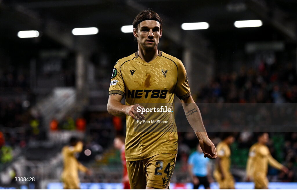 11 December 2025; Borna Sosa of Crystal Palace during the UEFA Conference League 2025/26 league phase match between Shelbourne and Crystal Palace at Tallaght Stadium in Dublin. Photo by Ben McShane/Sportsfile