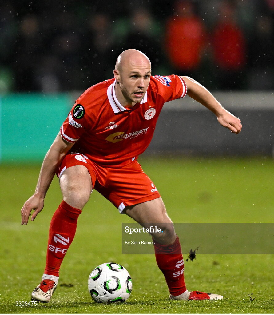 11 December 2025; Kerr McInroy of Shelbourne during the UEFA Conference League 2025/26 league phase match between Shelbourne and Crystal Palace at Tallaght Stadium in Dublin. Photo by Sam Barnes/Sportsfile