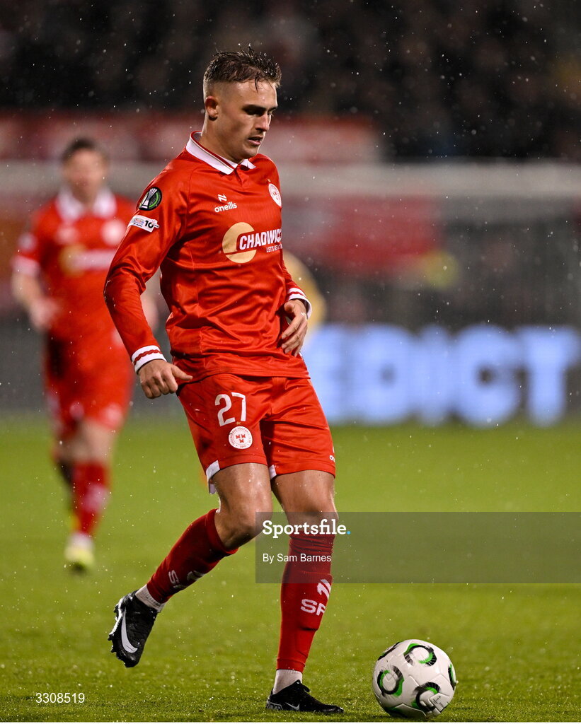11 December 2025; Evan Caffrey of Shelbourne during the UEFA Conference League 2025/26 league phase match between Shelbourne and Crystal Palace at Tallaght Stadium in Dublin. Photo by Sam Barnes/Sportsfile