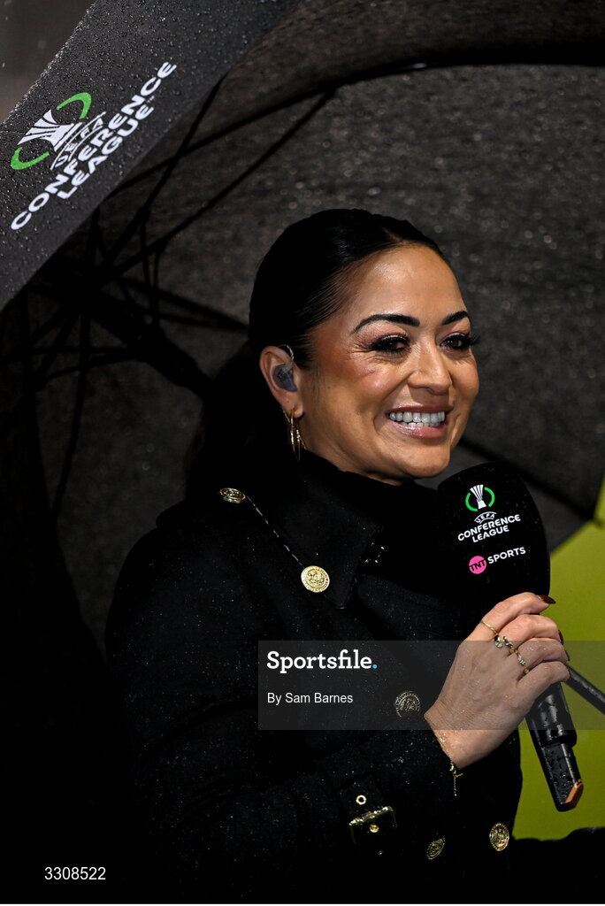 11 December 2025; TNT Presenter and broadcaster Jules Breach during the UEFA Conference League 2025/26 league phase match between Shelbourne and Crystal Palace at Tallaght Stadium in Dublin. Photo by Sam Barnes/Sportsfile