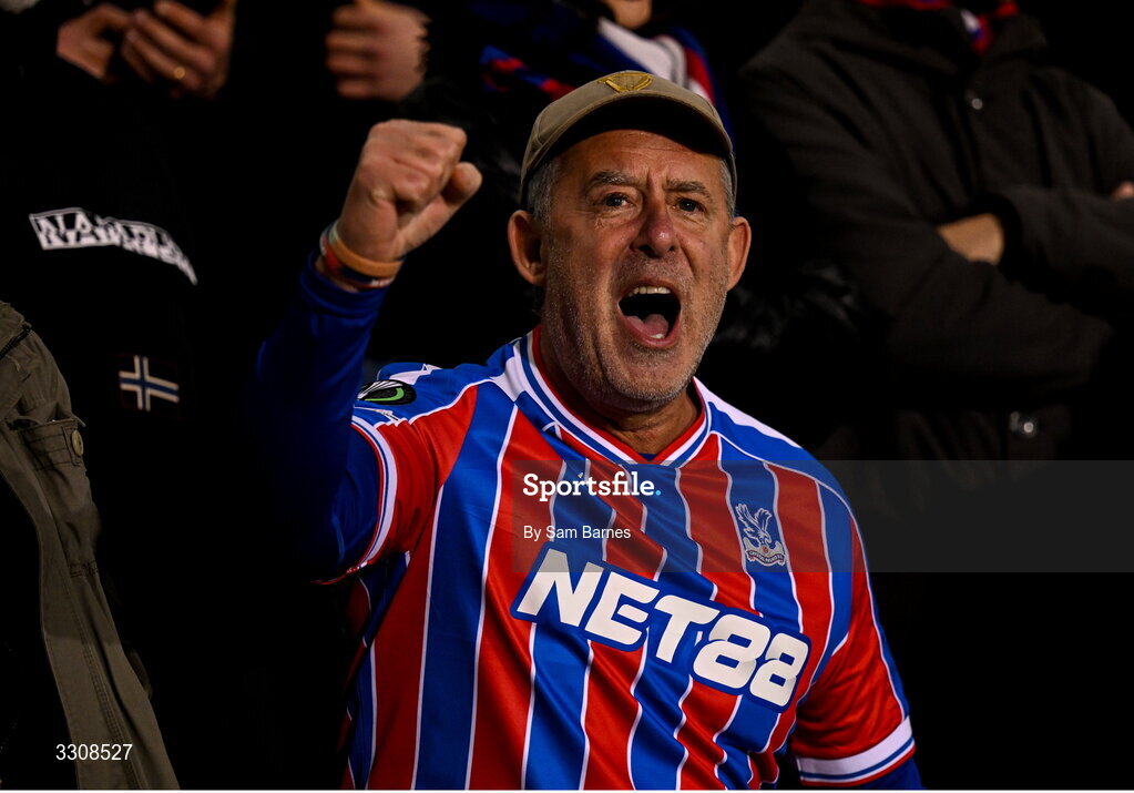 11 December 2025; Crystal Palace supporters during the UEFA Conference League 2025/26 league phase match between Shelbourne and Crystal Palace at Tallaght Stadium in Dublin. Photo by Sam Barnes/Sportsfile
