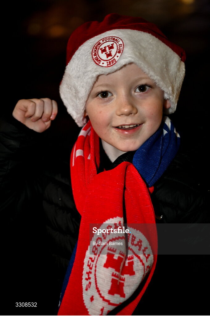 11 December 2025; Shelbourne supporter before the UEFA Conference League 2025/26 league phase match between Shelbourne and Crystal Palace at Tallaght Stadium in Dublin. Photo by Sam Barnes/Sportsfile