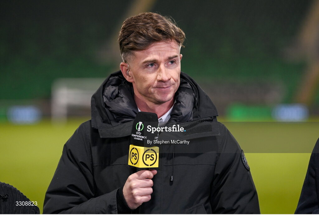11 December 2025; Premier Sports pundit Ronan Finn during the UEFA Conference League 2025/26 league phase match between Shelbourne and Crystal Palace at Tallaght Stadium in Dublin. Photo by Stephen McCarthy/Sportsfile