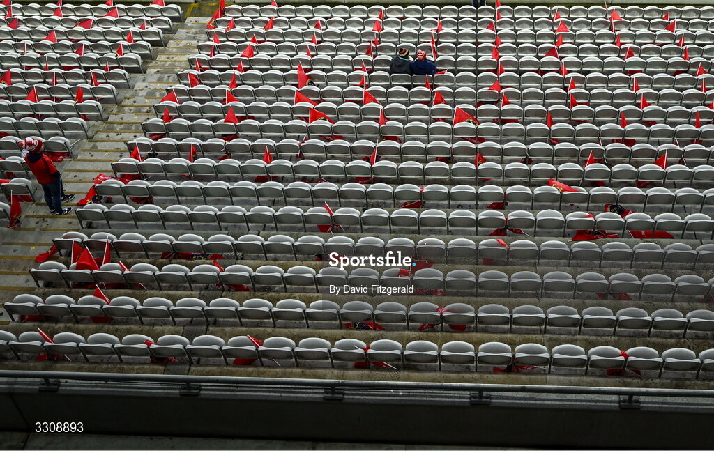 13 December 2025; Munsters supporters take their seats before the Investec Champions Cup match between Munster and Gloucester at SuperValu Páirc Ui Chaoimh in Cork. Photo by David Fitzgerald/Sportsfile