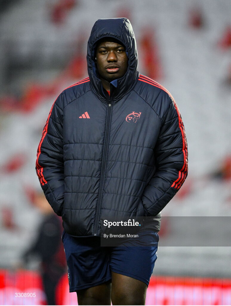 13 December 2025; Edwin Edogbo of Munster before the Investec Champions Cup match between Munster and Gloucester at SuperValu Páirc Ui Chaoimh in Cork. Photo by Brendan Moran/Sportsfile