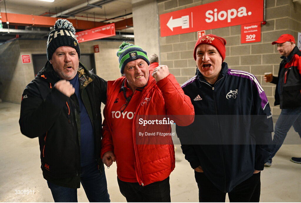 13 December 2025; Munster supporters in the concourse before the Investec Champions Cup match between Munster and Gloucester at SuperValu Páirc Ui Chaoimh in Cork. Photo by David Fitzgerald/Sportsfile