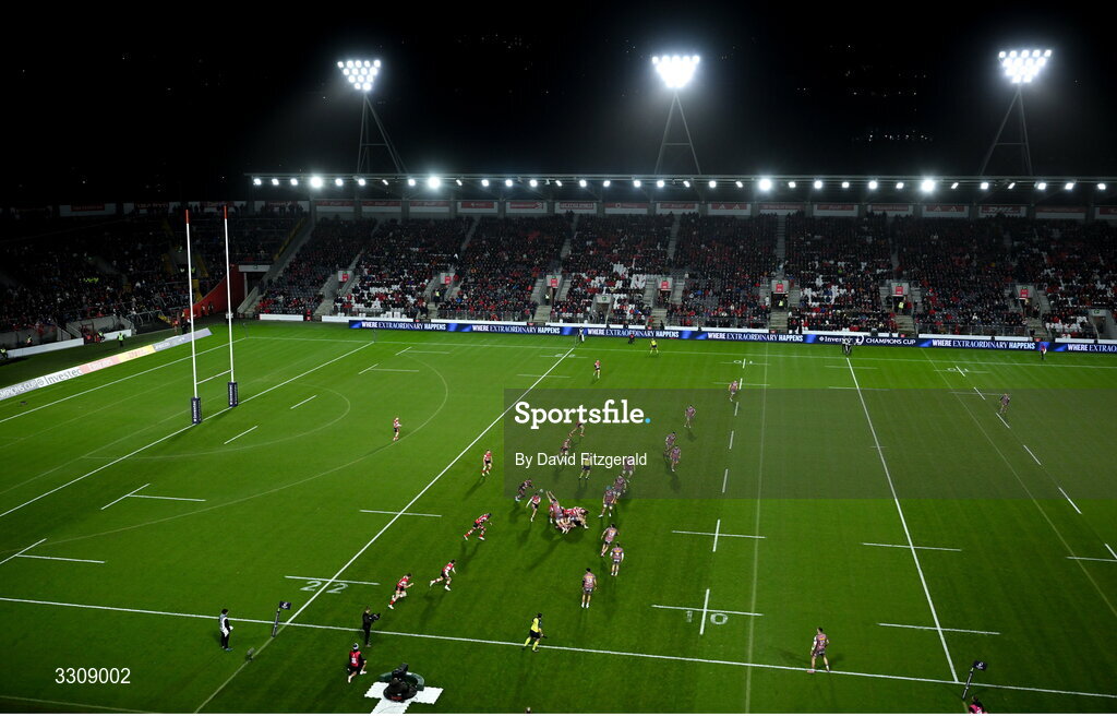 13 December 2025; A general view of action during the Investec Champions Cup match between Munster and Gloucester at SuperValu Páirc Ui Chaoimh in Cork. Photo by David Fitzgerald/Sportsfile