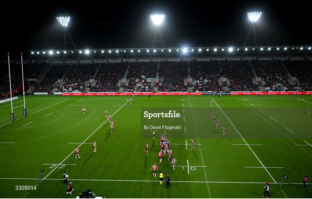 13 December 2025; A general view of a lineout during the Investec Champions Cup match between Munster and Gloucester at SuperValu Páirc Ui Chaoimh in Cork. Photo by David Fitzgerald/Sportsfile