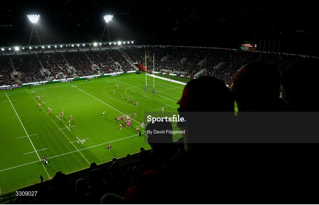 13 December 2025; A general view of the action during the Investec Champions Cup match between Munster and Gloucester at SuperValu Páirc Ui Chaoimh in Cork. Photo by David Fitzgerald/Sportsfile