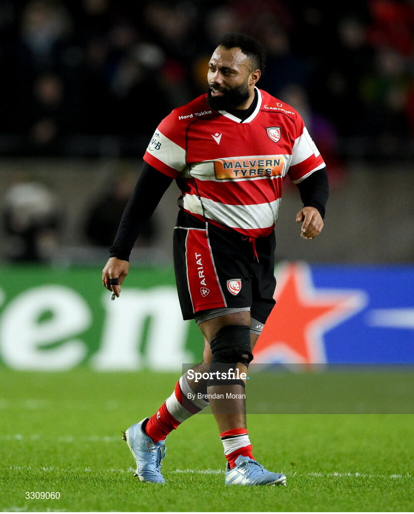 13 December 2025; Jamal Ford-Robinson of Gloucester leaves the pitch after being issued a yellow card for foul play during the Investec Champions Cup match between Munster and Gloucester at SuperValu Páirc Ui Chaoimh in Cork. Photo by Brendan Moran/Sportsfile