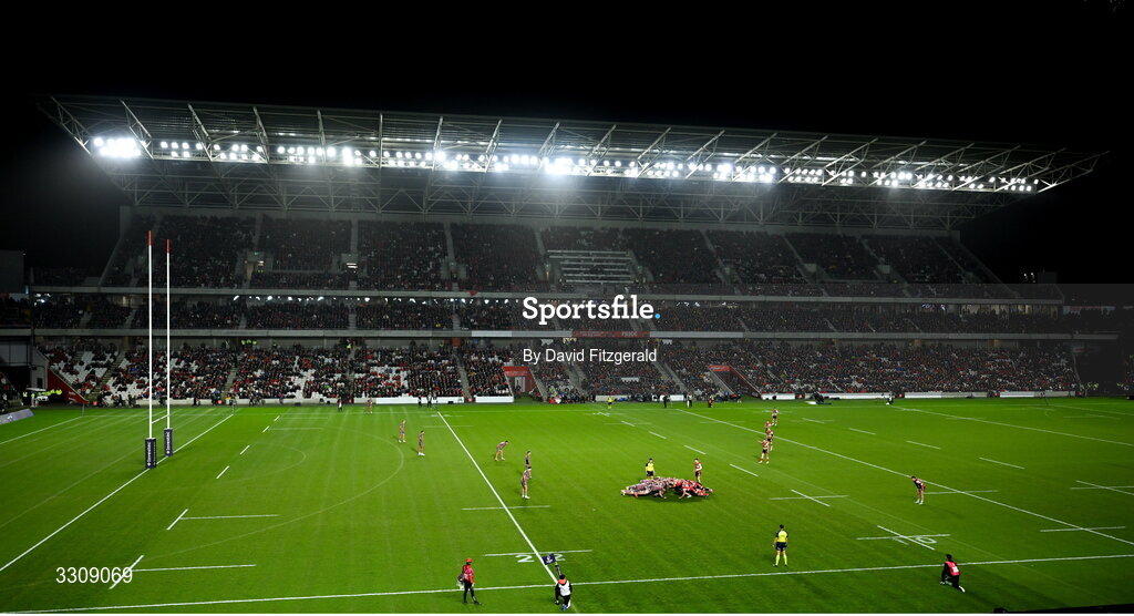 13 December 2025; A general view of a scrum during the Investec Champions Cup match between Munster and Gloucester at SuperValu Páirc Ui Chaoimh in Cork. Photo by David Fitzgerald/Sportsfile