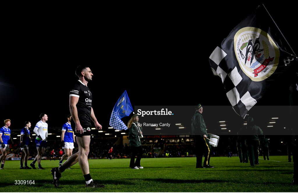 13 December 2025; Kilcoo captain Darryl Branagan leads his side in the parade before the AIB Ulster GAA Football Senior Club Championship final match between Kilcoo and Scotstown at BOX-IT Athletic Grounds in Armagh. Photo by Ramsey Cardy/Sportsfile