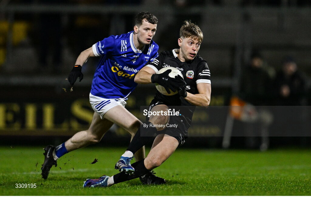 13 December 2025; Jerome Johnston of Kilcoo in action against Darragh Murray of Scotstown during the AIB Ulster GAA Football Senior Club Championship final match between Kilcoo and Scotstown at BOX-IT Athletic Grounds in Armagh. Photo by Ramsey Cardy/Sportsfile