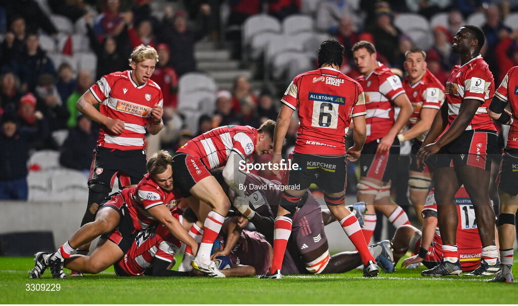 13 December 2025; Tadhg Beirne of Munster scores his side's fifth try during the Investec Champions Cup match between Munster and Gloucester at SuperValu Páirc Ui Chaoimh in Cork. Photo by David Fitzgerald/Sportsfile