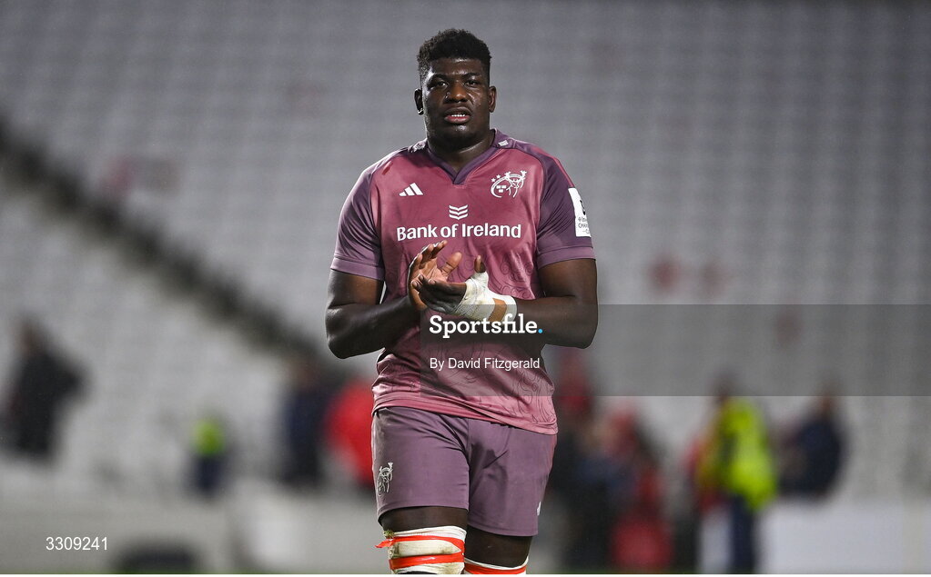 13 December 2025; Edwin Edogbo of Munster after the Investec Champions Cup match between Munster and Gloucester at SuperValu Páirc Ui Chaoimh in Cork. Photo by David Fitzgerald/Sportsfile