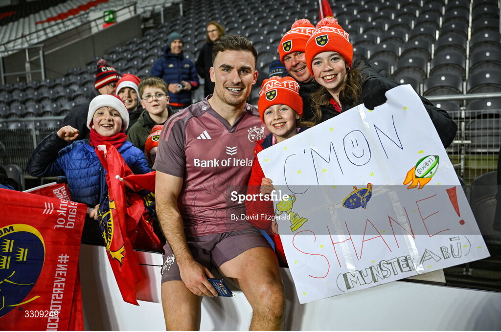 13 December 2025; Shane Daly of Munster with family after the Investec Champions Cup match between Munster and Gloucester at SuperValu Páirc Ui Chaoimh in Cork. Photo by David Fitzgerald/Sportsfile