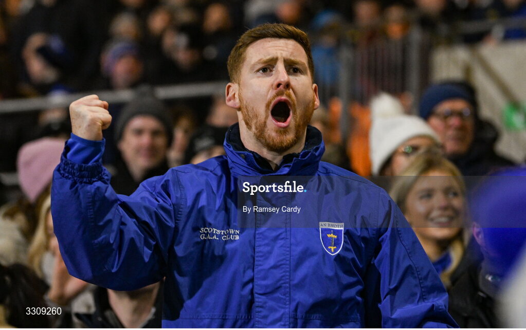 13 December 2025; A Scotstown supporter during the AIB Ulster GAA Football Senior Club Championship final match between Kilcoo and Scotstown at BOX-IT Athletic Grounds in Armagh. Photo by Ramsey Cardy/Sportsfile