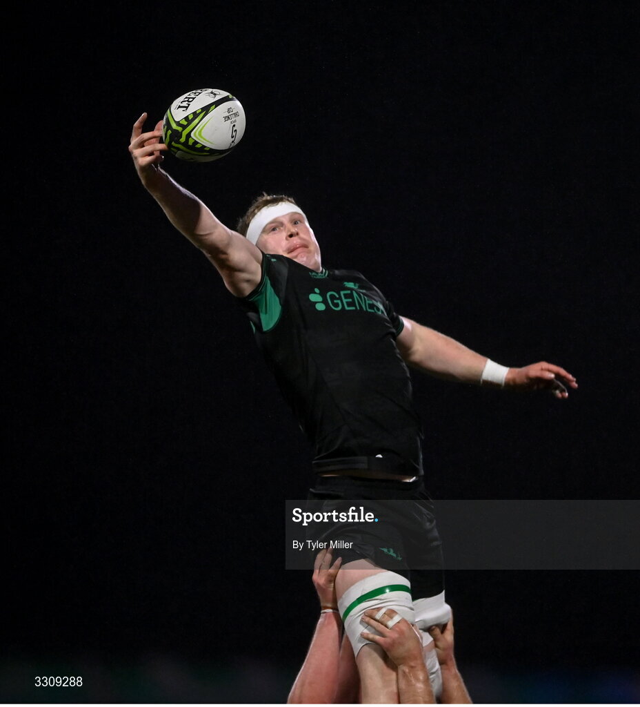 13 December 2025; Sean O'Brien of Connacht wins possession in a line-out during the EPCR Challenge Cup match between Connacht and Black Lion at Dexcom Stadium in Galway. Photo by Tyler Miller/Sportsfile