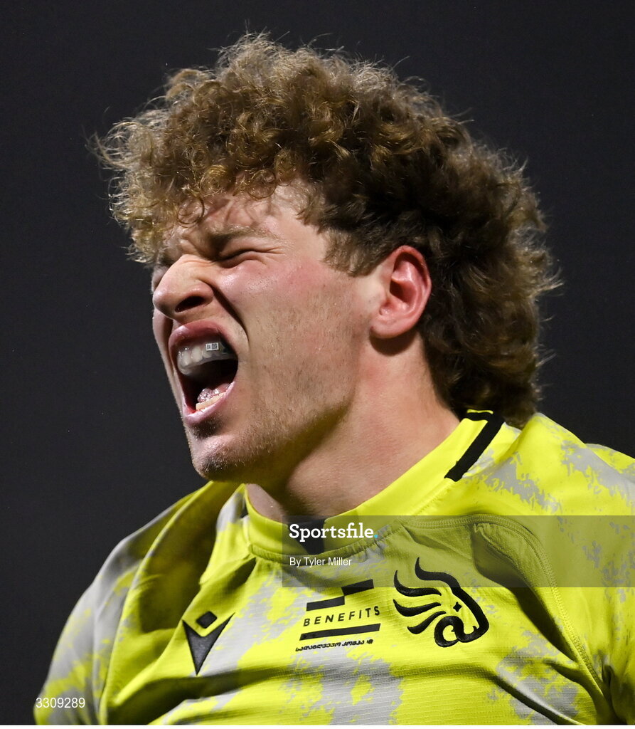 13 December 2025; Luka Takaishvili of Black Lion reacts after his side concede a fifth try during the EPCR Challenge Cup match between Connacht and Black Lion at Dexcom Stadium in Galway. Photo by Tyler Miller/Sportsfile