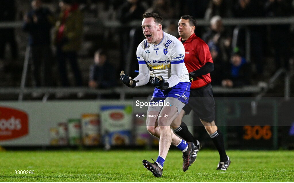 13 December 2025; Scotstown goalkeeper Rory Beggan celebrates at the final whistle of the AIB Ulster GAA Football Senior Club Championship final match between Kilcoo and Scotstown at BOX-IT Athletic Grounds in Armagh. Photo by Ramsey Cardy/Sportsfile