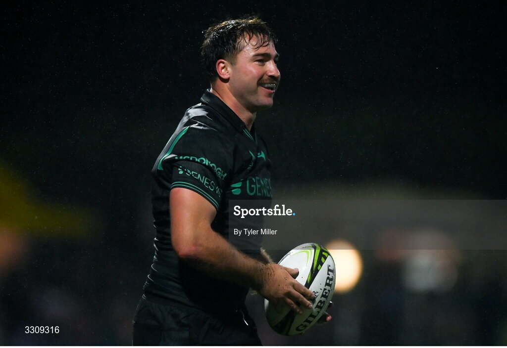 13 December 2025; Shayne Bolton of Connacht celebrates after scoring his side's sixth try during the EPCR Challenge Cup match between Connacht and Black Lion at Dexcom Stadium in Galway. Photo by Tyler Miller/Sportsfile
