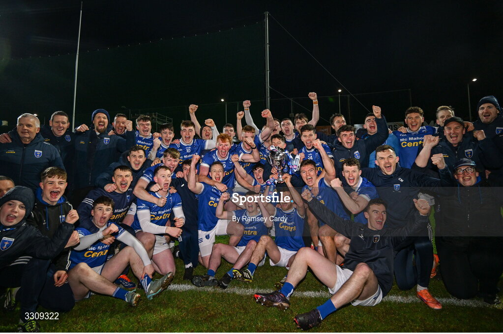 13 December 2025; The Scotstown team celebrate with the trophy after the AIB Ulster GAA Football Senior Club Championship final match between Kilcoo and Scotstown at BOX-IT Athletic Grounds in Armagh. Photo by Ramsey Cardy/Sportsfile