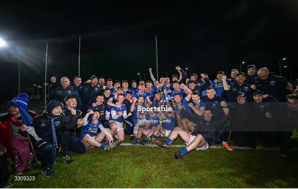13 December 2025; The Scotstown team celebrate with the trophy after the AIB Ulster GAA Football Senior Club Championship final match between Kilcoo and Scotstown at BOX-IT Athletic Grounds in Armagh. Photo by Ramsey Cardy/Sportsfile