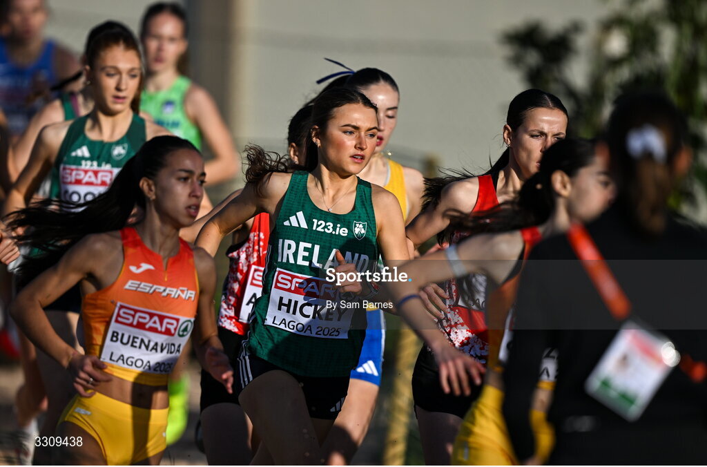 14 December 2025; Emma Hickey of Ireland during the U20 women's race at the 2025 SPAR European Cross Country Championships in Lagoa, Portugal. Photo by Sam Barnes/Sportsfile
