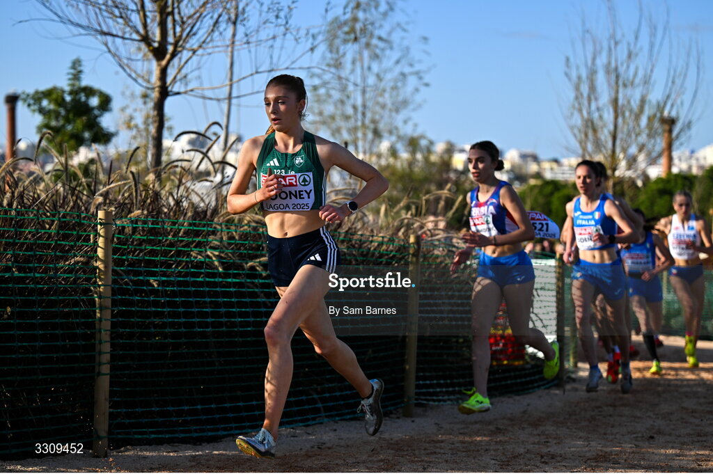 14 December 2025; Eimear Cooney of Ireland during the U20 women's race at the 2025 SPAR European Cross Country Championships in Lagoa, Portugal. Photo by Sam Barnes/Sportsfile