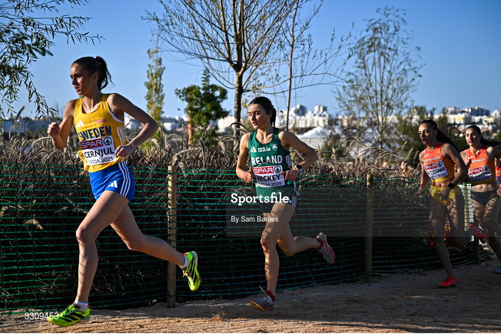 14 December 2025; Emma Hickey of Ireland during the U20 women's race at the 2025 SPAR European Cross Country Championships in Lagoa, Portugal. Photo by Sam Barnes/Sportsfile