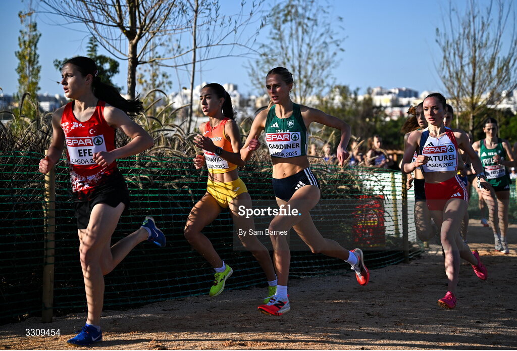14 December 2025; Anna Gardiner of Ireland during the U20 women's race at the 2025 SPAR European Cross Country Championships in Lagoa, Portugal. Photo by Sam Barnes/Sportsfile