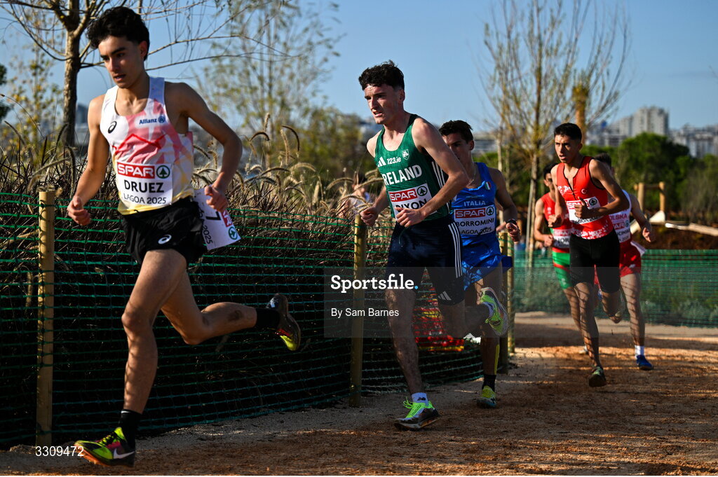 14 December 2025; Cormac Dixon of Ireland during the U20 men's race at the 2025 SPAR European Cross Country Championships in Lagoa, Portugal. Photo by Sam Barnes/Sportsfile