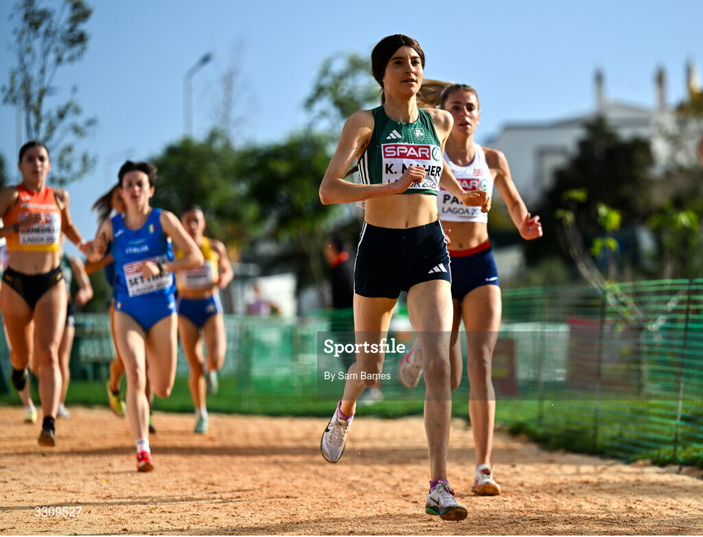 14 December 2025; Kirsty Maher of Ireland during the U23 women's race at the 2025 SPAR European Cross Country Championships in Lagoa, Portugal. Photo by Sam Barnes/Sportsfile