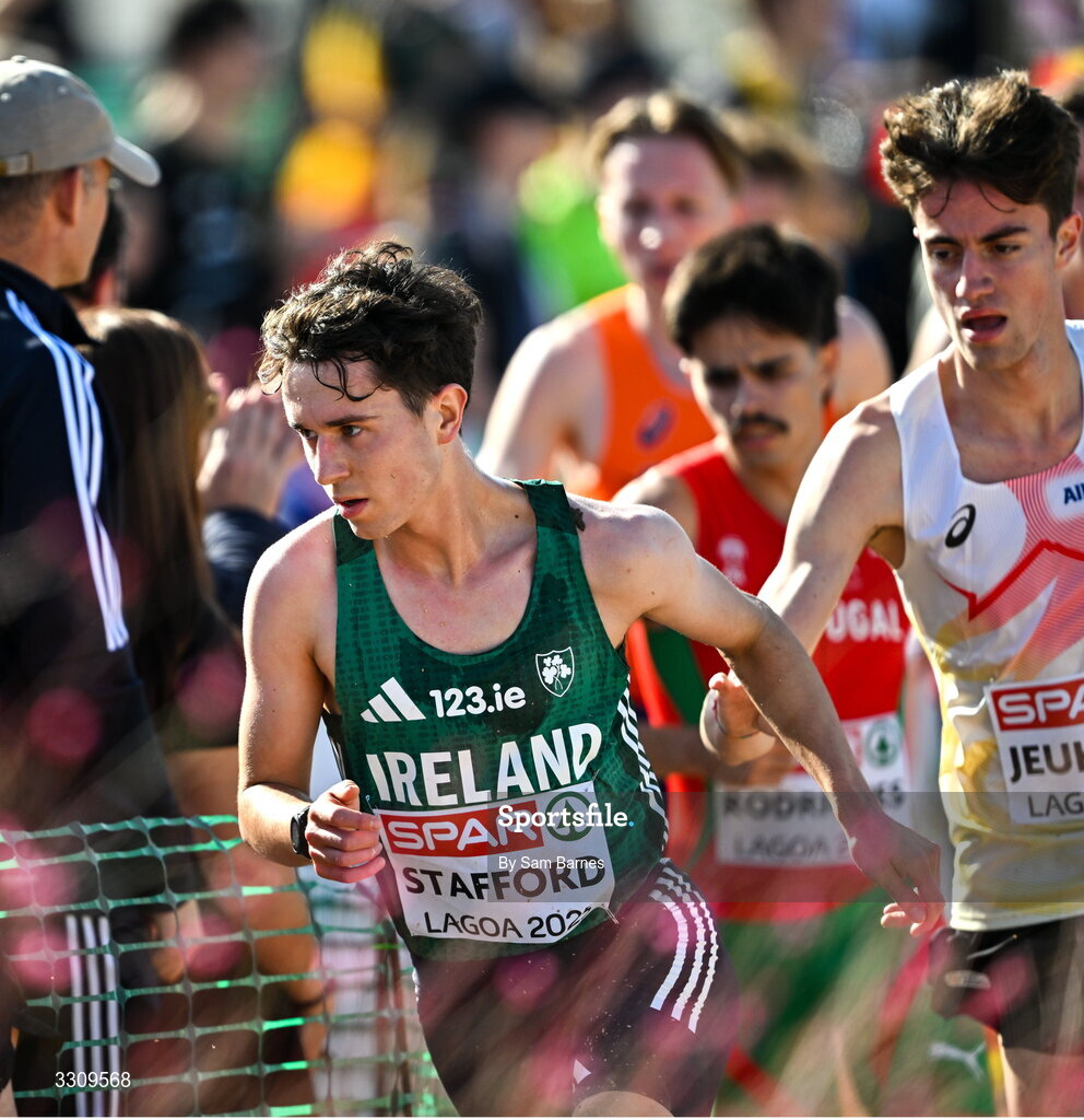 14 December 2025; Jonas Stafford of Ireland during the U23 men's race at the 2025 SPAR European Cross Country Championships in Lagoa, Portugal. Photo by Sam Barnes/Sportsfile