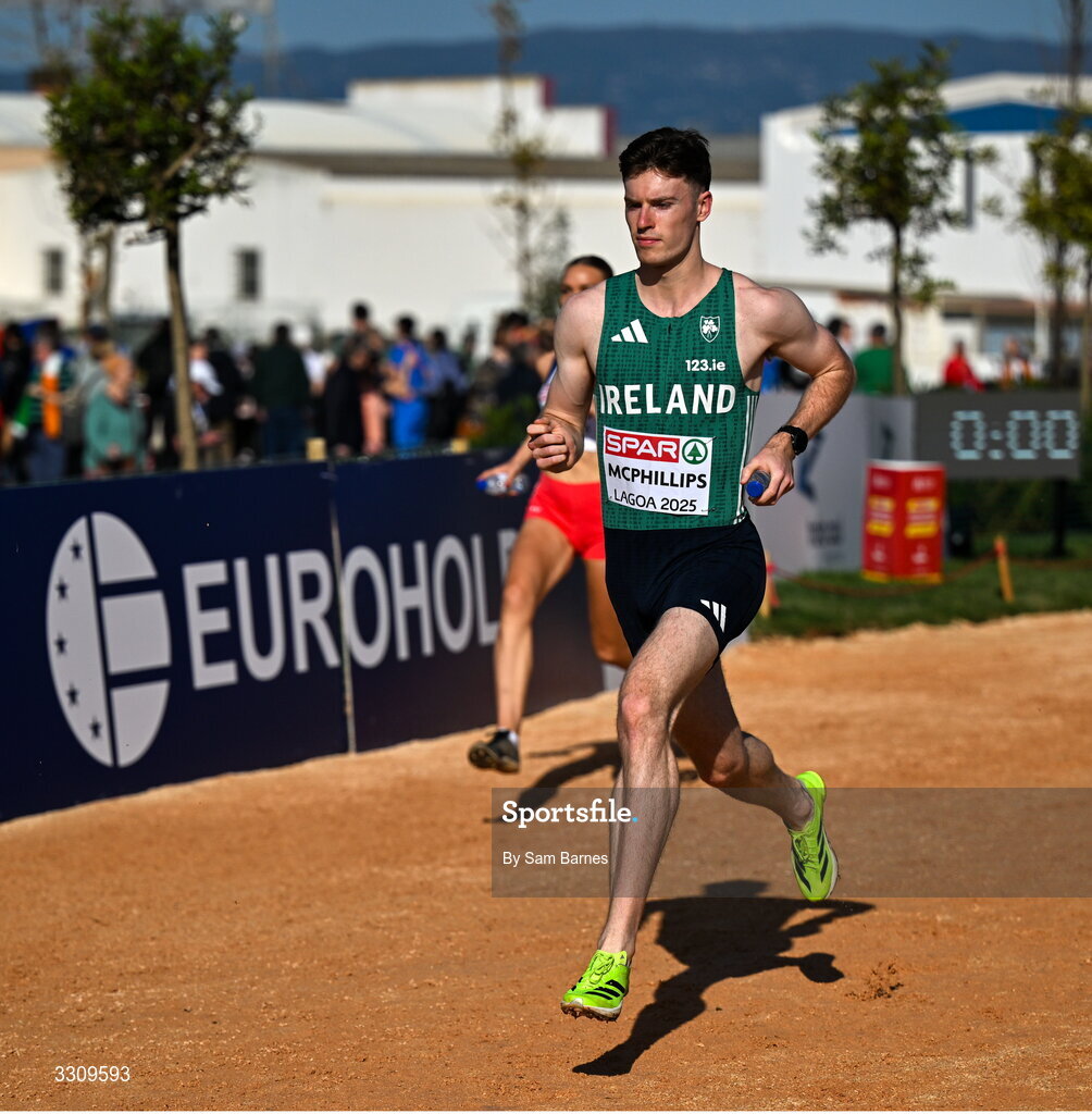 14 December 2025; Cian McPhillips of Ireland during the mixed relay race at the 2025 SPAR European Cross Country Championships in Lagoa, Portugal. Photo by Sam Barnes/Sportsfile
