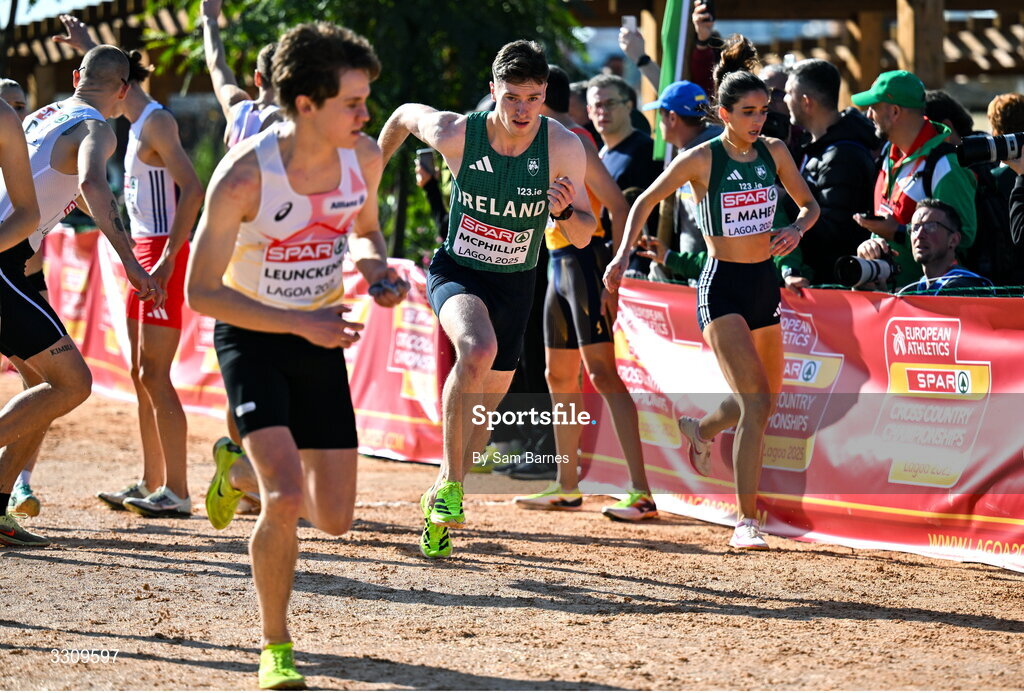 14 December 2025; Cian McPhillips of Ireland during the U23 men's race at the 2025 SPAR European Cross Country Championships in Lagoa, Portugal. Photo by Sam Barnes/Sportsfile