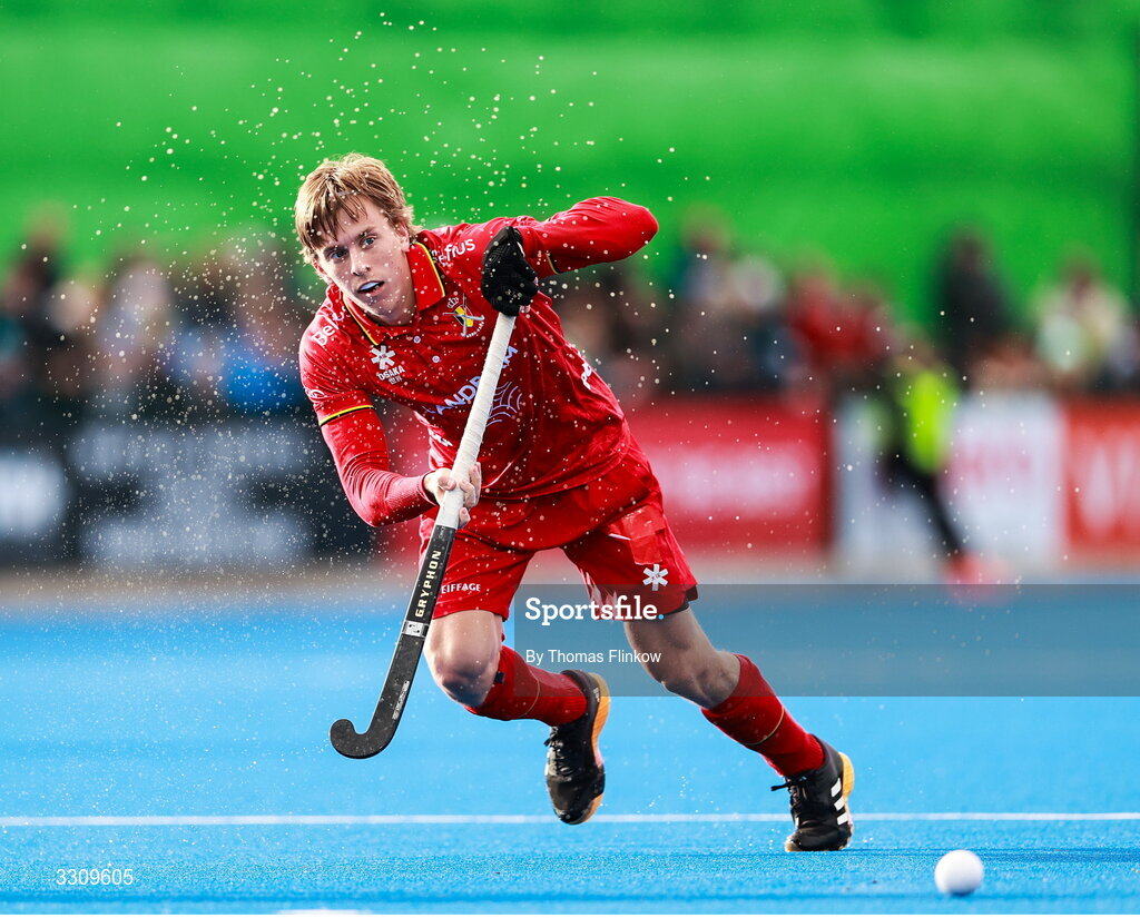 14 December 2025; Thomas Crols of Belgium during the FIH Men's Hockey Pro League match between England and Belgium at the Sport Ireland Campus in Dublin. Photo by Thomas Flinkow/Sportsfile