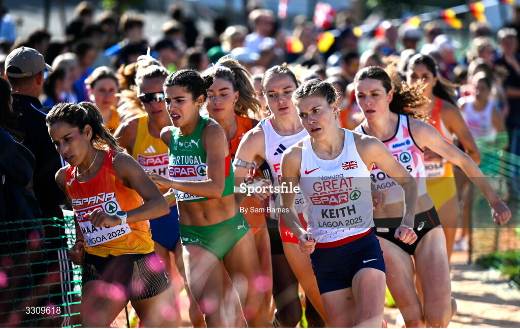 14 December 2025; Megan Keith of Great Britain during the senior women's race at the 2025 SPAR European Cross Country Championships in Lagoa, Portugal. Photo by Sam Barnes/Sportsfile