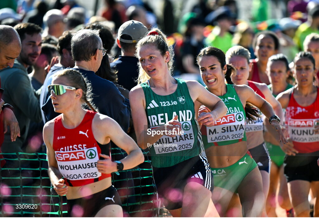 14 December 2025; Mary Mulhare of Ireland during the senior women's race at the 2025 SPAR European Cross Country Championships in Lagoa, Portugal. Photo by Sam Barnes/Sportsfile