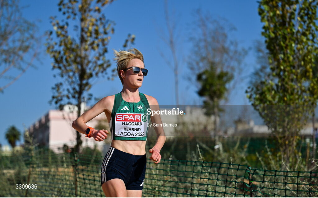 14 December 2025; Emily Haggard-Kearney of Ireland during the senior women's race at the 2025 SPAR European Cross Country Championships in Lagoa, Portugal. Photo by Sam Barnes/Sportsfile