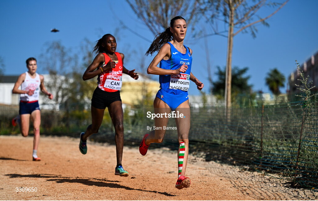 14 December 2025; Nadia Battocletti of Italy during the senior women's race at the 2025 SPAR European Cross Country Championships in Lagoa, Portugal. Photo by Sam Barnes/Sportsfile