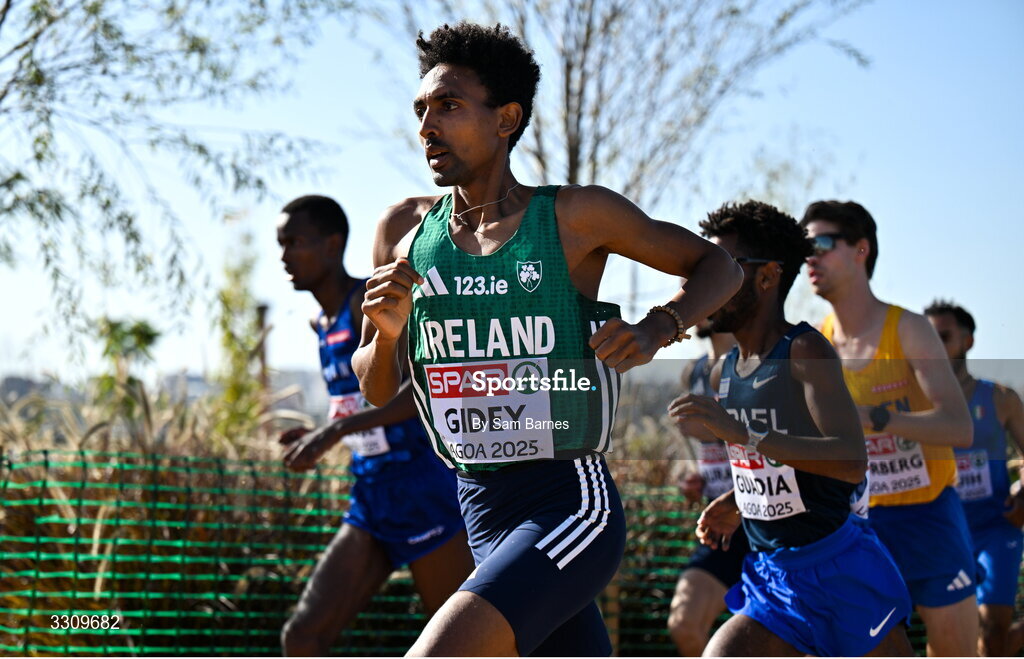 14 December 2025; Efrem Gidey of Ireland during the senior men's race at the 2025 SPAR European Cross Country Championships in Lagoa, Portugal. Photo by Sam Barnes/Sportsfile