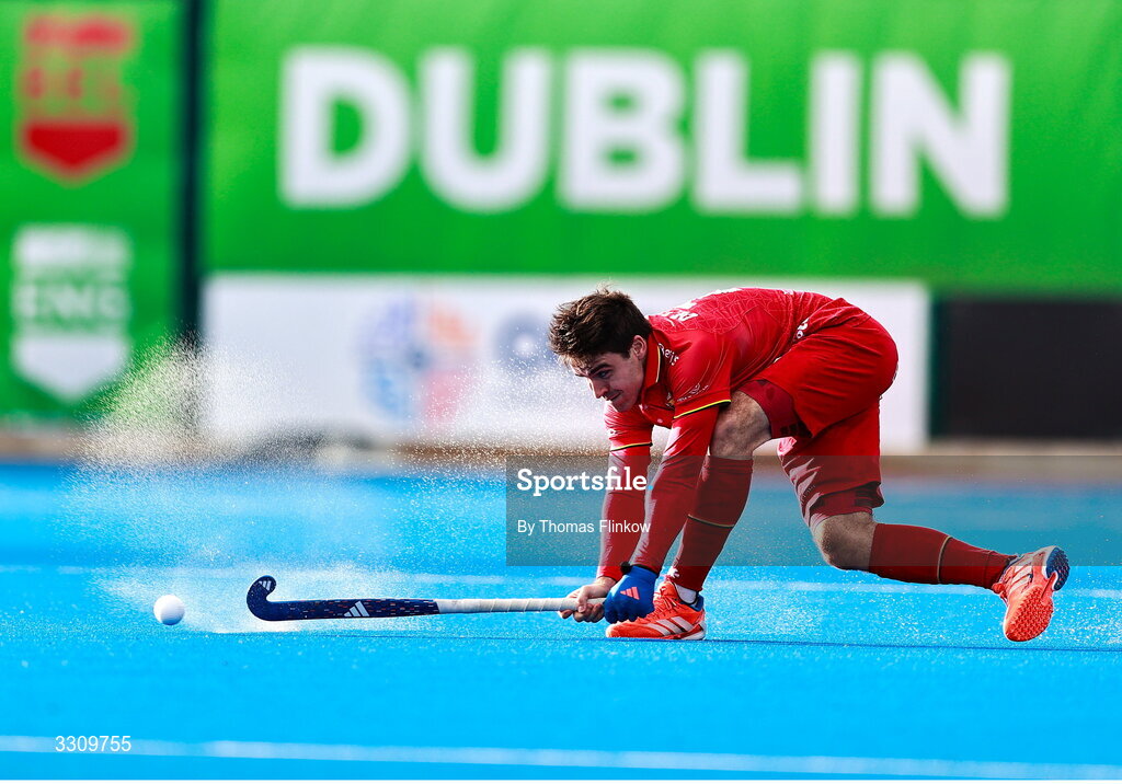 14 December 2025; Arthur de Sloover of Belgium during the FIH Men's Hockey Pro League match between England and Belgium at the Sport Ireland Campus in Dublin. Photo by Thomas Flinkow/Sportsfile
