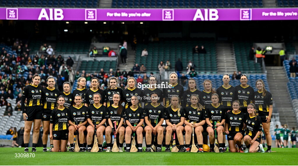 14 December 2025; The Camross panel before the AIB All-Ireland Camogie Intermediate Club Championship final match between Ballincollig of Cork and Camross of Laois at Croke Park in Dublin. Photo by Seb Daly/Sportsfile