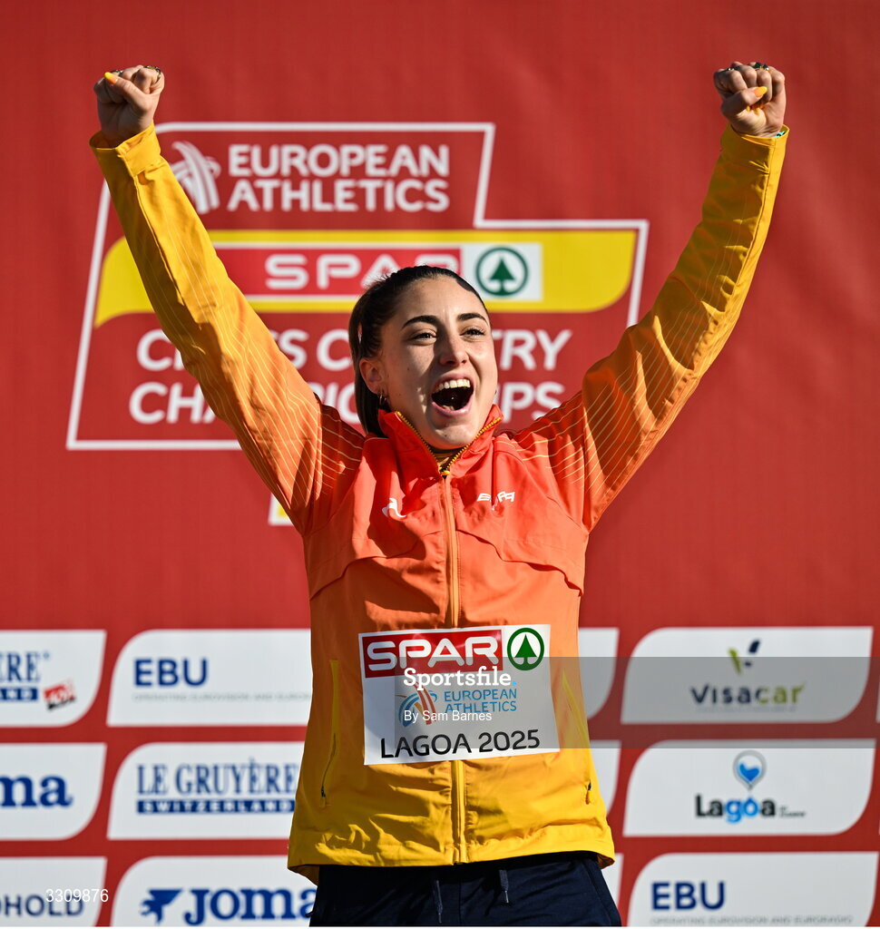 14 December 2025; Maria Forero of Spain after the U23 women's race during the 2025 SPAR European Cross Country Championships in Lagoa, Portugal. Photo by Sam Barnes/Sportsfile