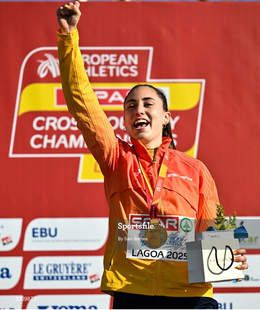 14 December 2025; Maria Forero of Spain after the U23 women's race during the 2025 SPAR European Cross Country Championships in Lagoa, Portugal. Photo by Sam Barnes/Sportsfile
